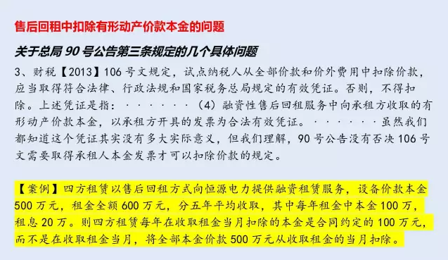 日前出臺的《國家稅務總局關于營業稅改征增值稅試點期間有關增值稅問題的公告》(國家稅務總局公告2015年第90號)對融資租賃行業給予了特別的關注,當然不是特別的照顧,主要是明確了融資租賃涉及的兩個口徑問題。