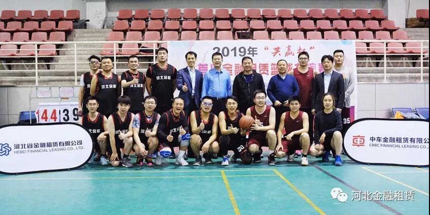 河北金租董事長徐敏俊(后排右五)、監(jiān)事長肖剛(后排右六)、副總裁李永德(后排右七)、工會主席石拴江(后排右四)等與籃球隊合影。