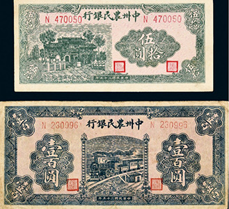 中州農民銀行伍拾圓、壹佰圓