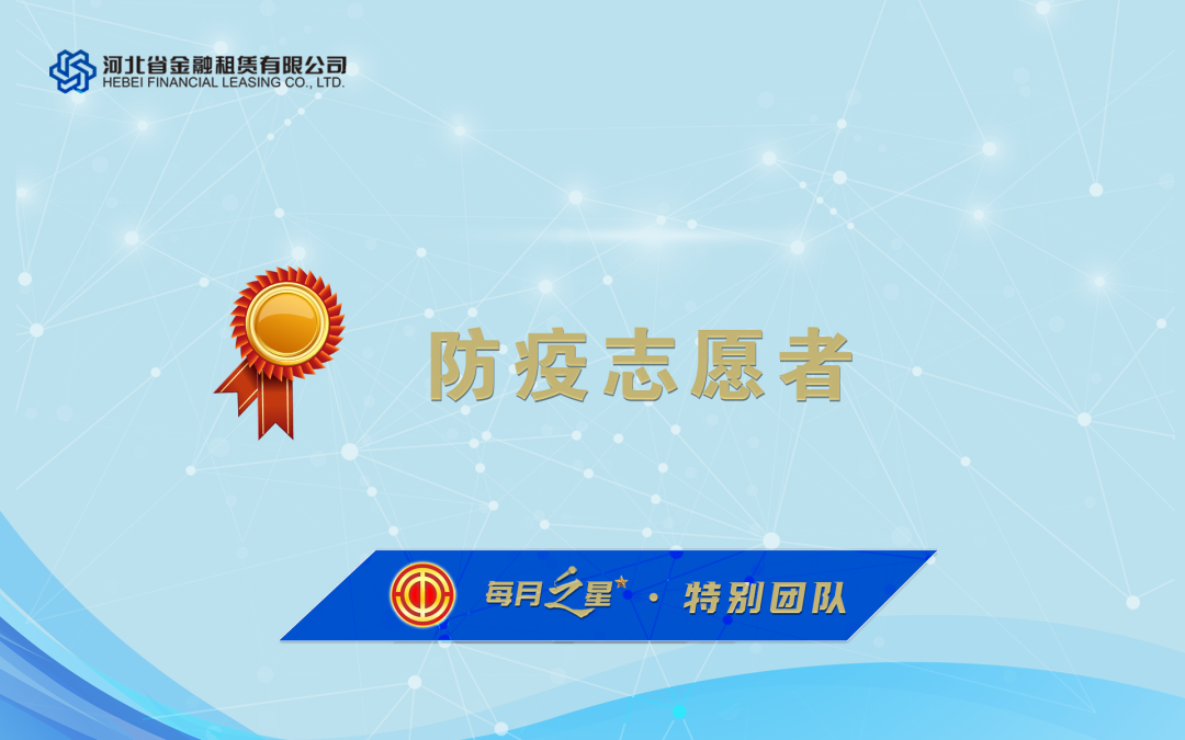 8河北金租一方面抓業務促投放,積極創新業務模式和打磨服務產品,一方面積極落實區域防疫政策,以責任傳遞租賃溫度,為疫情防控貢獻力量。工會委員會評選出本月“每月之星”,請優勝團隊和優秀員工珍惜榮譽,再立新功,請全體干部員工以先進為榜樣,再接再厲,再創佳績