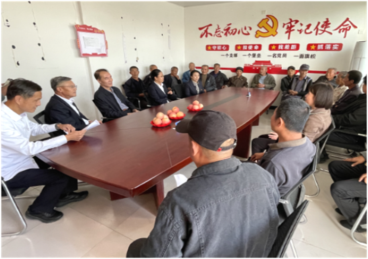 在楊家庵村委會黨建工作室,駐村工作隊向大家介紹了目前鄉村振興的大好機遇和工作計劃落實情況,大家與村兩委及黨員代表親切交流、了解情況,在創新工作思路、研究方式方法和工作舉措上暢所欲言。并要求駐村工作隊按照公司黨委要求持續做好增加村民收入、加強協同村務工作,鞏固脫貧攻堅成果,全力推動鄉村振興工作有序開展。