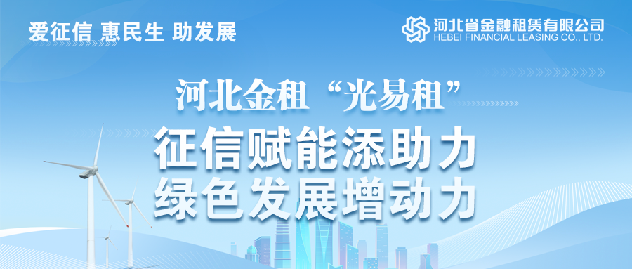 在第十七個(gè)“6·14信用記錄關(guān)愛(ài)日”到來(lái)之際,中國(guó)人民銀行河北省分行全面開(kāi)展“愛(ài)征信 惠民生 助發(fā)展”專題宣傳活動(dòng),向社會(huì)公眾推介征信高質(zhì)量發(fā)展助推實(shí)體經(jīng)濟(jì)的經(jīng)驗(yàn)做法,促進(jìn)社會(huì)共建信用體系。河北省金融租賃有限公司(以下簡(jiǎn)稱“河北金租”)的特色租賃產(chǎn)品“光易租”入選此次宣傳典型案例,其踐行征信文化、支持綠色金融的做法獲得了監(jiān)管部門(mén)和社會(huì)各界的好評(píng)。